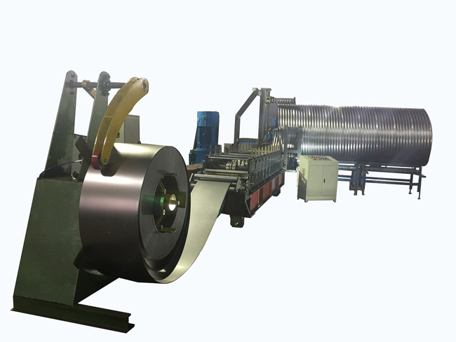 金屬波紋涵管成型機,該設(shè)備能加工生產(chǎn)不同規(guī)格、不同型號的市政排水管、城市排污等行業(yè)需要的鍍鋅螺旋肋波紋鋼管。全套設(shè)備采用電腦系統(tǒng)控制,生產(chǎn)效率高。