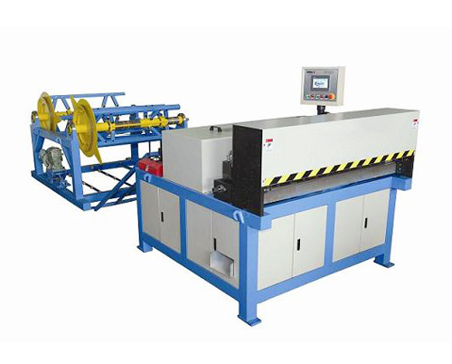 生產(chǎn)二線是由上料架、調(diào)平壓筋機、沖尖口和沖方口機、剪板機所組成。電器控制部分采用全電腦控制,該控制系統(tǒng)具有閉環(huán)反饋系統(tǒng),生產(chǎn)精度和穩(wěn)定性明顯提高。其大工作速度為10米/分鐘,長度誤差為±0.5mm/m,對角線誤差為±0.8mm/m,上料架可根據(jù)客戶的要求配套。