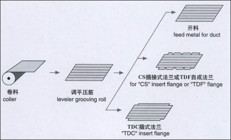 1,卷料—上料-開卷—調(diào)平壓筋-沖剪方口尖口-折彎—剪切與TDC配套-接料-下料(人工)